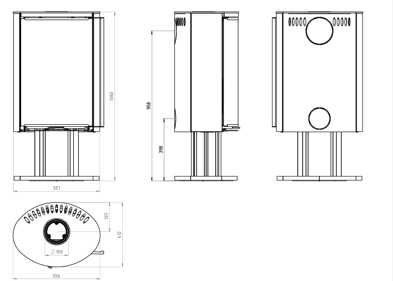 Ember Kaminofen E 16 Vollglastür drehbar
